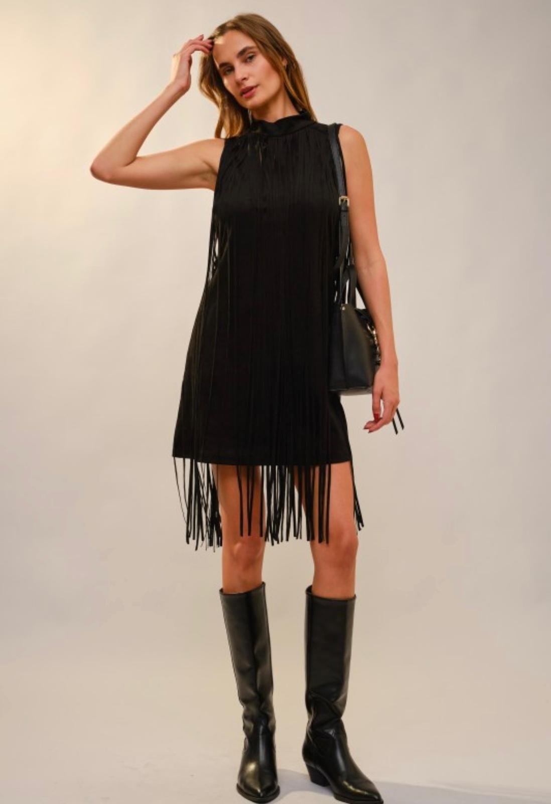 Suede Fringe Mini Dress